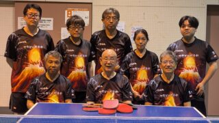 新ユニホーム完成しました。鹿児島の桜島の噴火をイメージしたユニホームです。派手に見えましたが、意外としっくり来ています。何度か来てみましたが、肌触りもよくてみんなにも好評です。卓球アドバンスさんで作成しました。好評につき追加注文依頼ががすで...